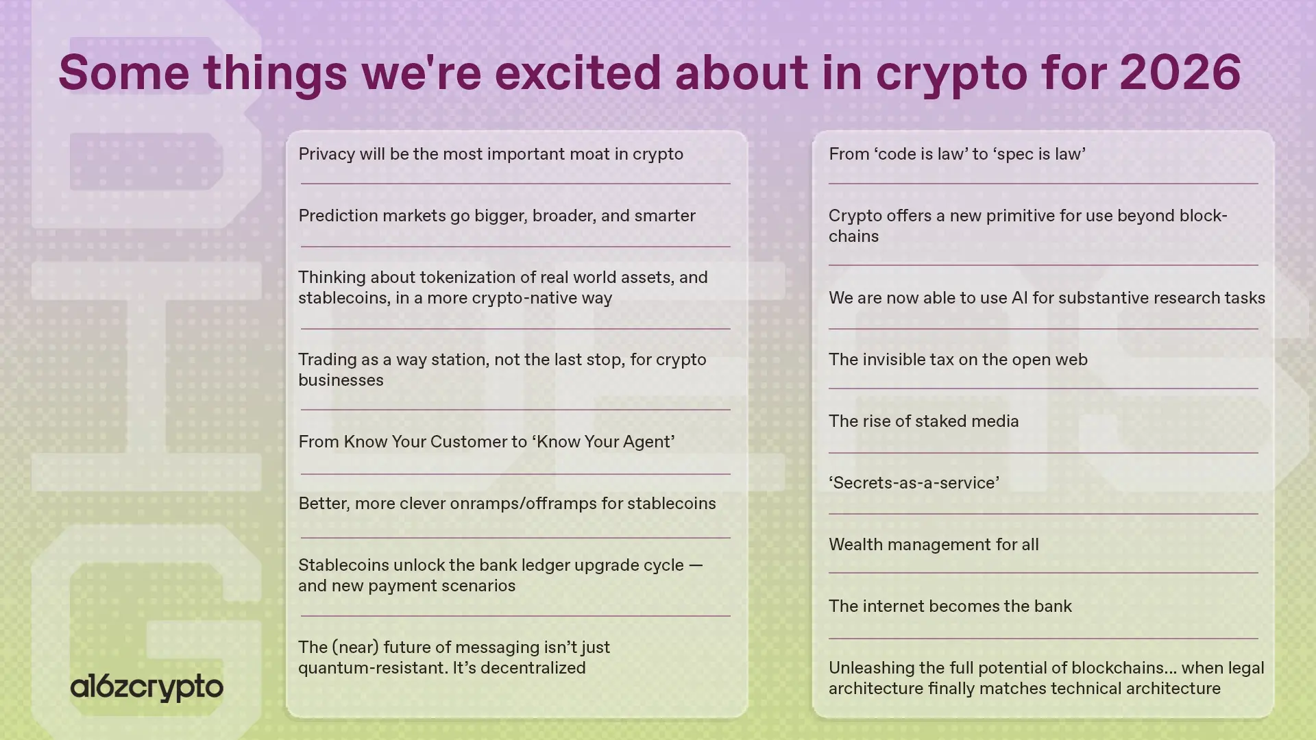 a16z 重磅年度报告:2026 年 Web3 行业最令我们兴奋的 17 大创意