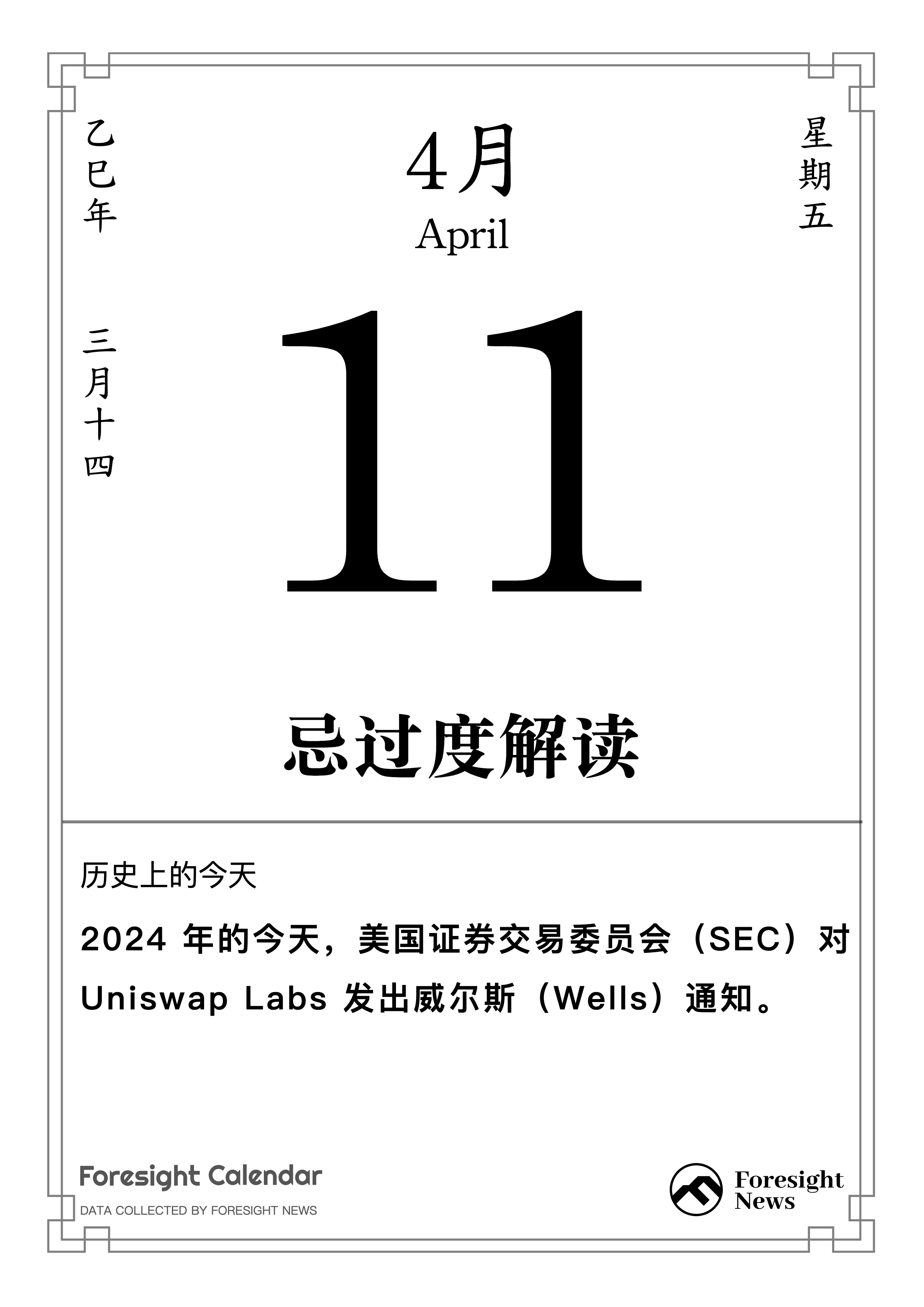 2024 年的今天,美国证券交易委员会(SEC)对 Uniswap Labs 发出威尔斯(Wells)通知。
