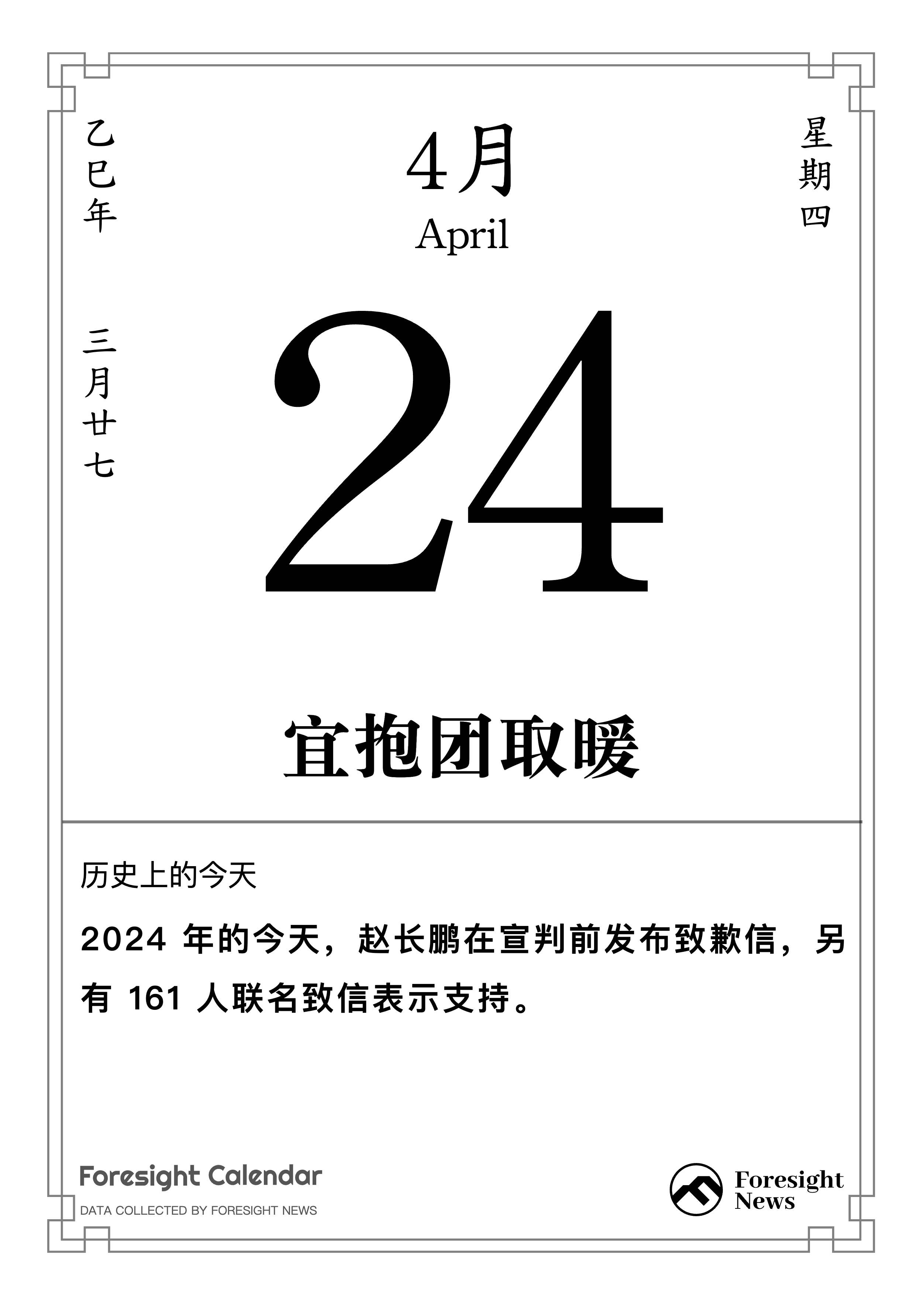 2024 年的今天,赵长鹏在宣判前发布致歉信,另有 161 人联名致信表示支持。