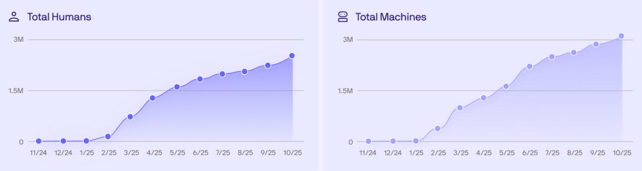 这些机器随后成为本地链上的参与者。peaq链上已有超过 300 万台机器,而且这个数字只会随着时间的推移而增长。
